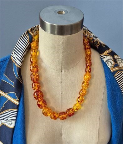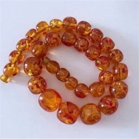 1960's Lucite Graduated like FAUX Amber Beaded Necklace
