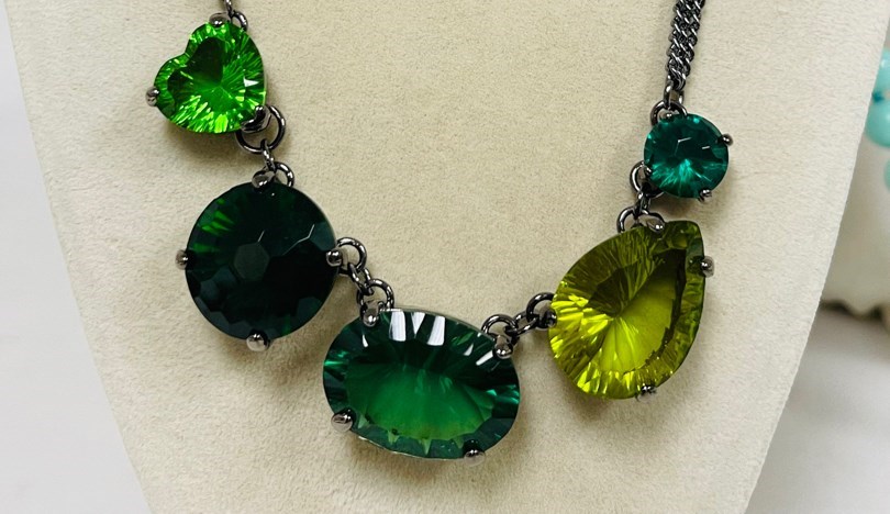 Clover Green Large 18mm Oval Crystal Necklace / Antique Silver