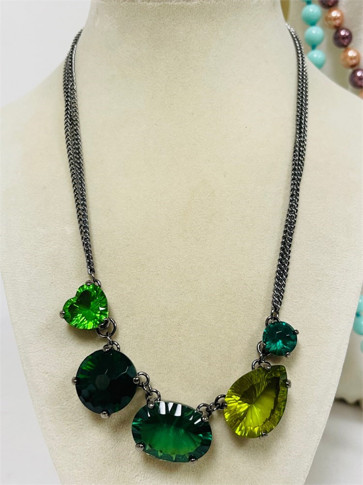 Clover Green Large 18mm Oval Crystal Necklace / Antique Silver
