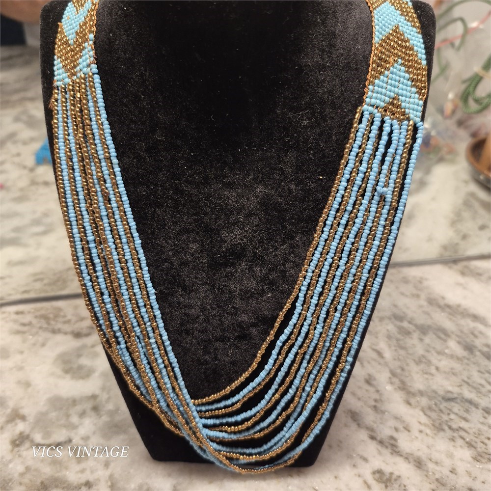 > 2 beaded necklaces are stunning examples of the beaded work