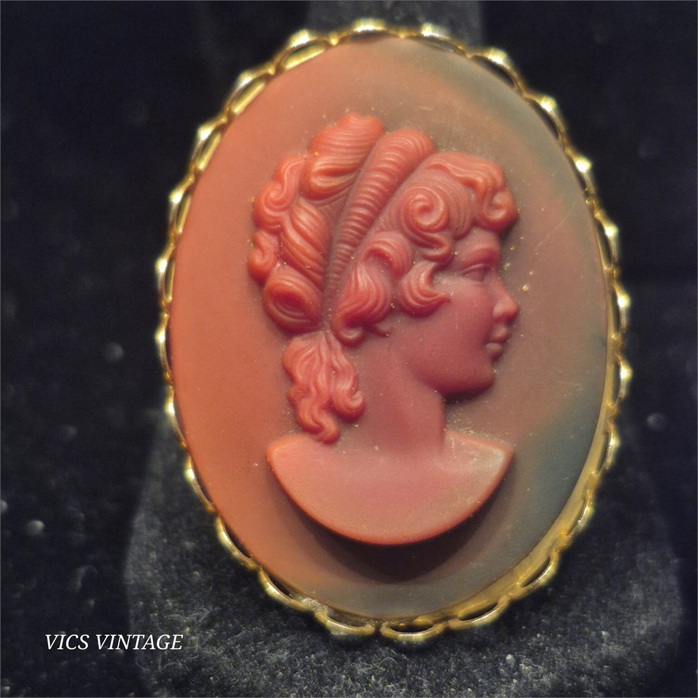 Gold setting w/ Soft burgundy matt  cameo