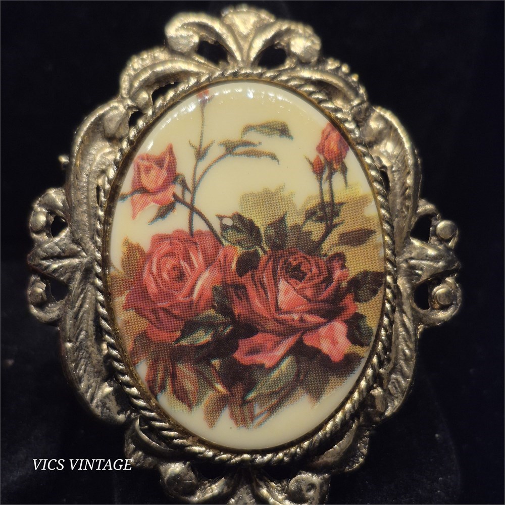 Pair of BROACHES ~ Cameo & Rose enamel