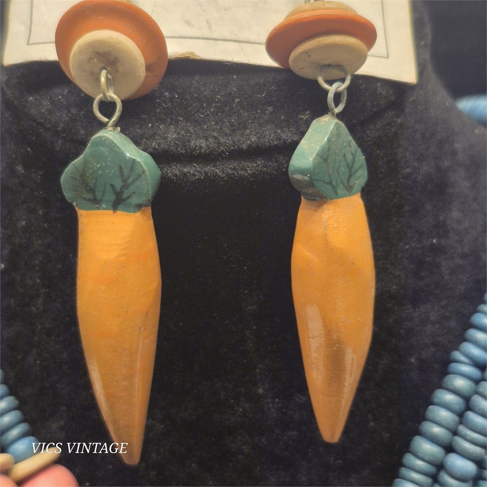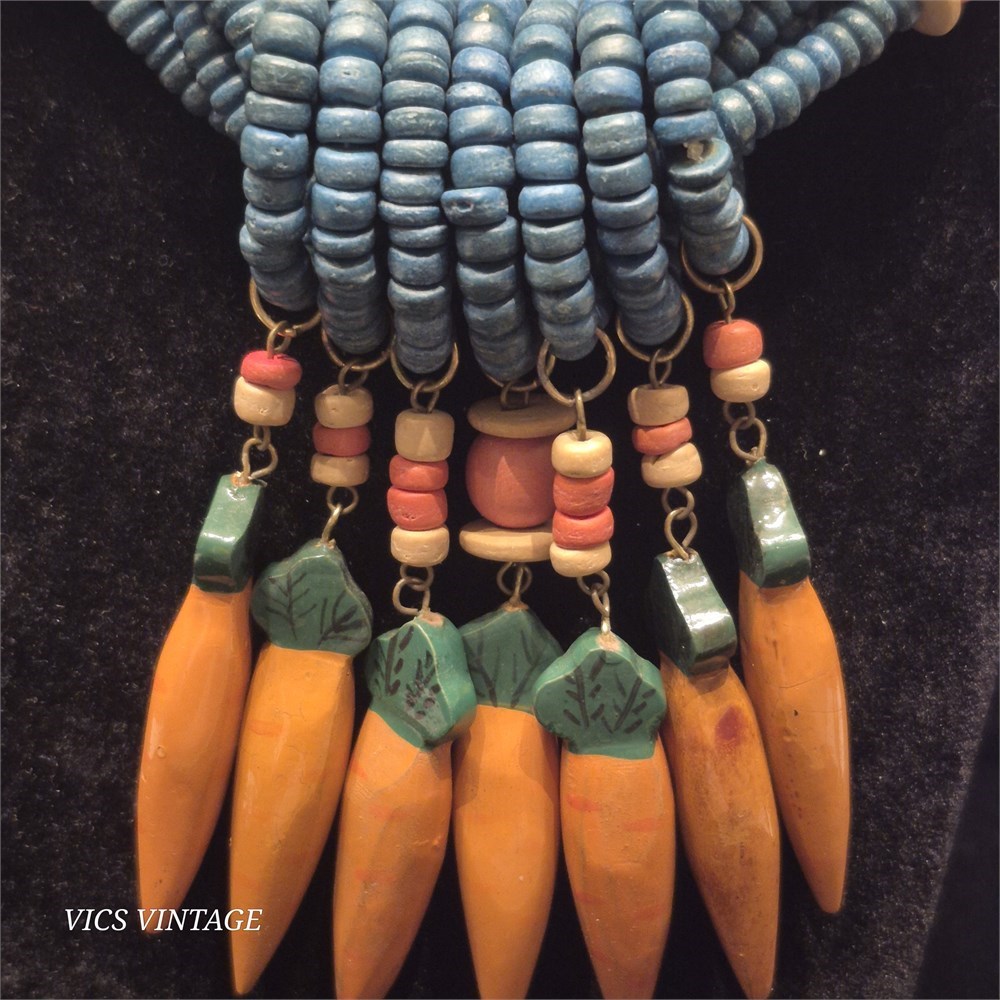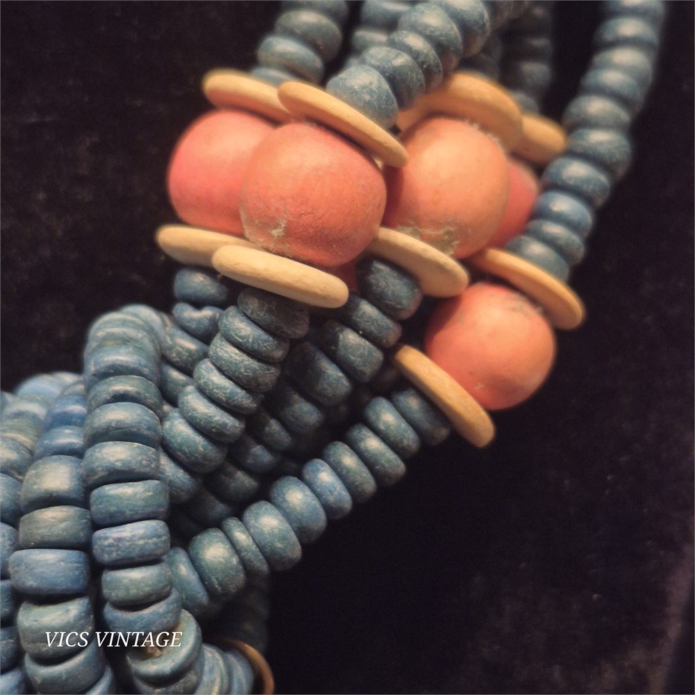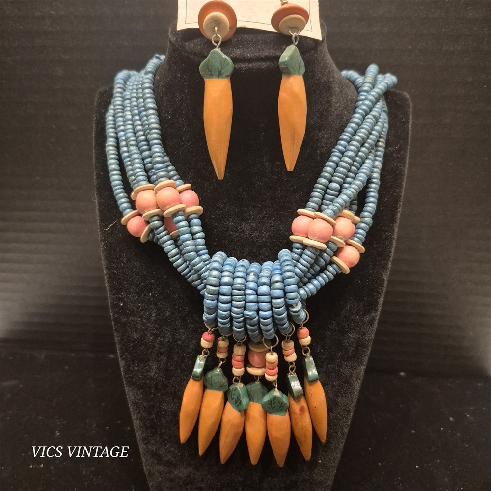 1960s Philippines designed Wood Beaded Necklace & matching Earrings