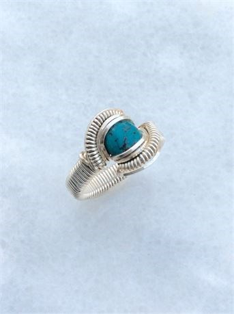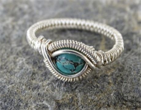 VINTAGE Wire Wrapped TURQUOISE RING SIZE 6 STERLING