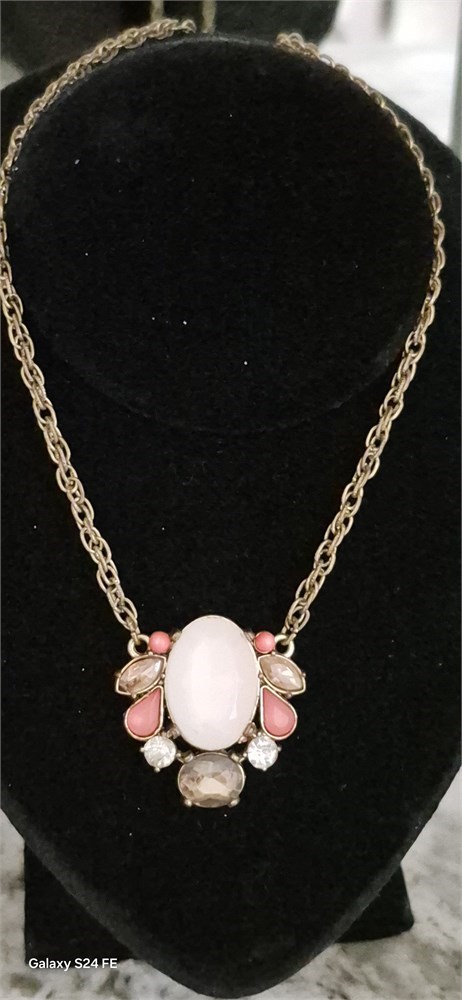 Very Pretty Monet Vintage Gold Tone Rhinestone Pendant Necklace....