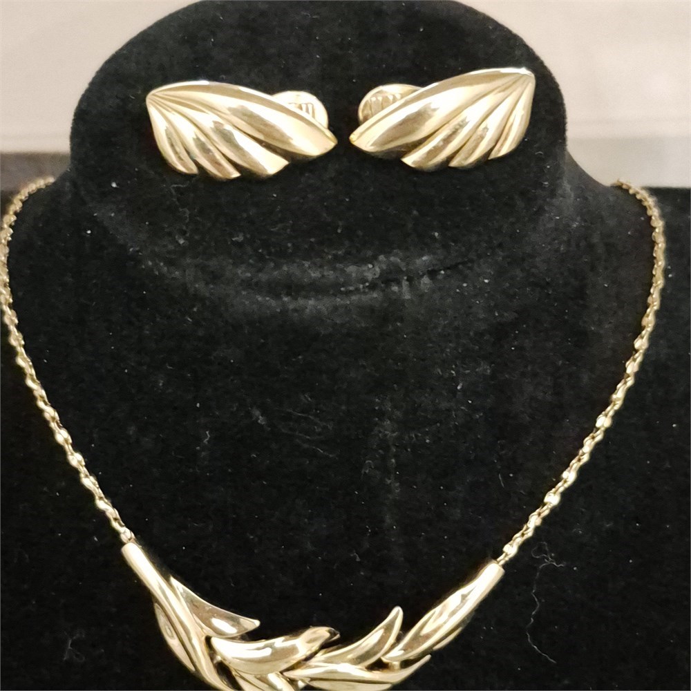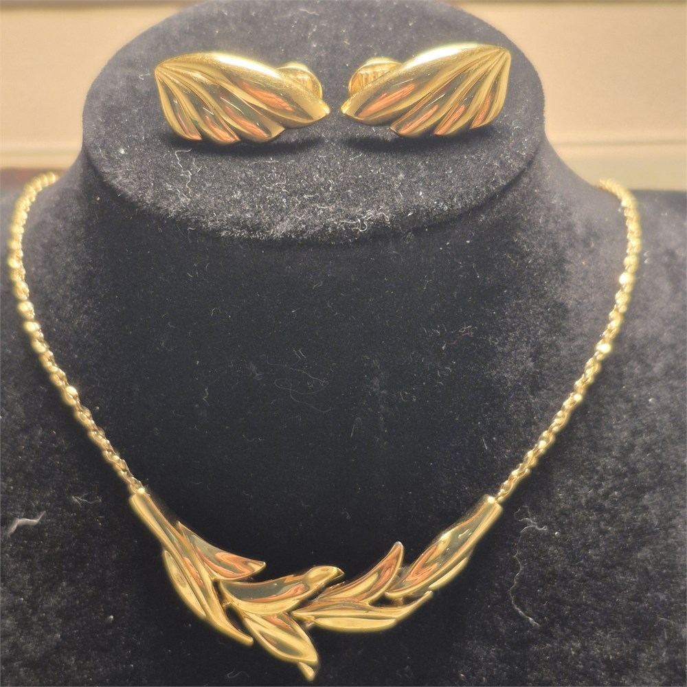 Vintage MONET Gold Choker w/ matching Monet Wing Earrings