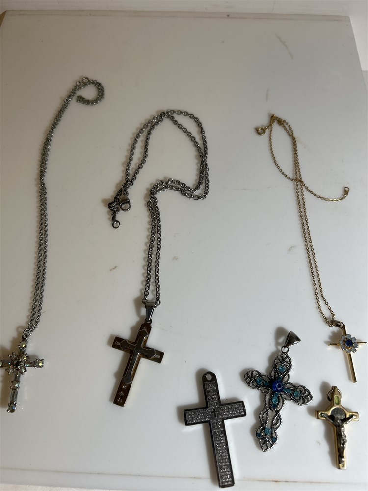 Cross Pendant Necklace Silver Tone Ball Chain And we have gold tone, six total three change, six crosses