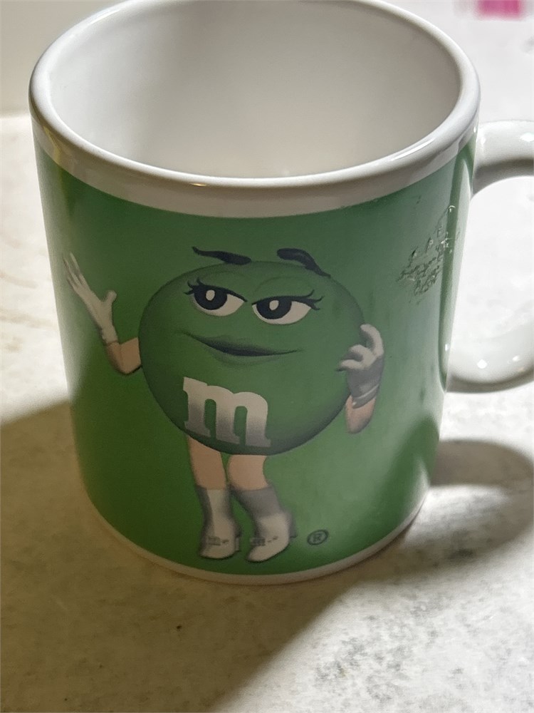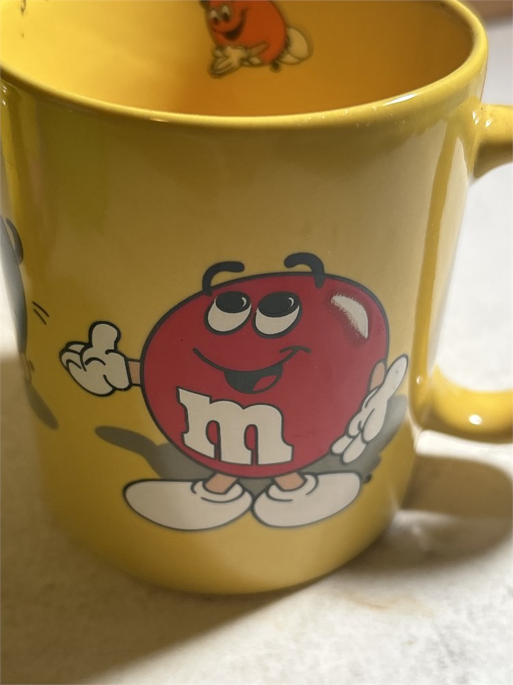 Vintage M&M, coffee cups, and sugar bowl one Large cup of coffee