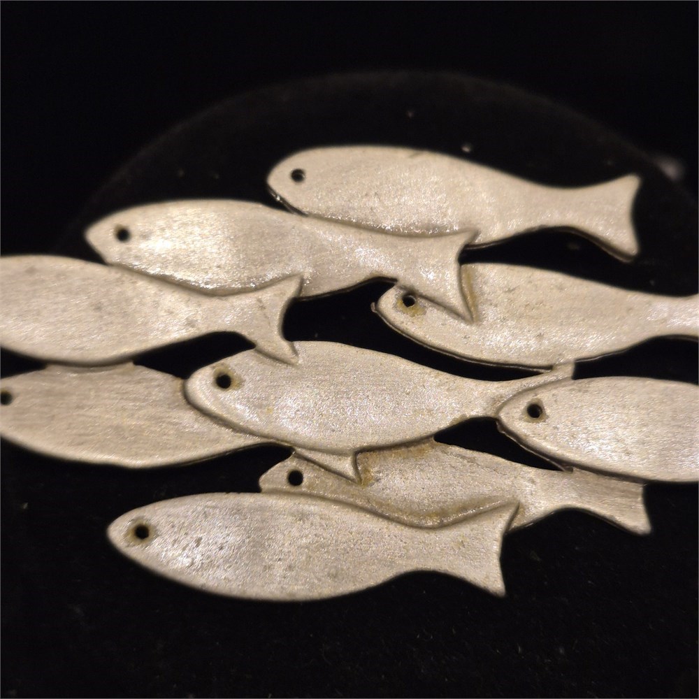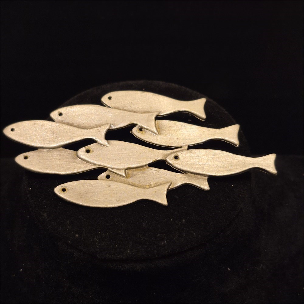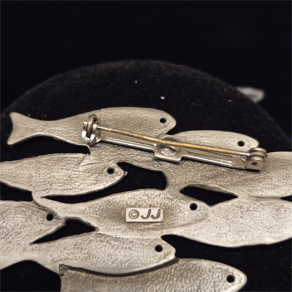 Sterling Fish School swimming BROOCH ~ marked JJ