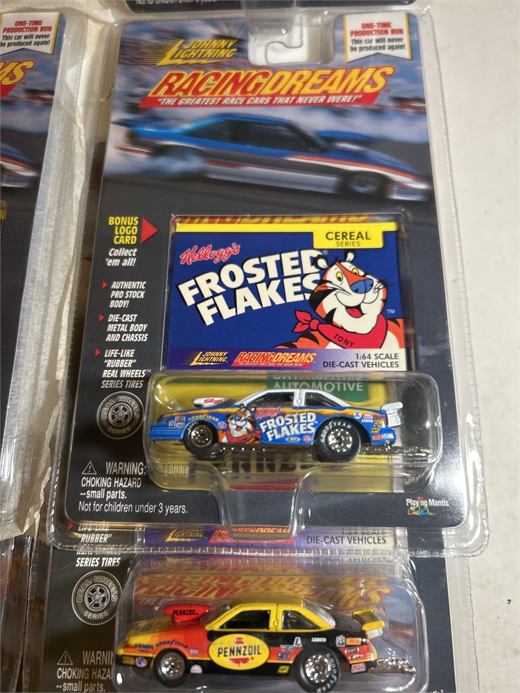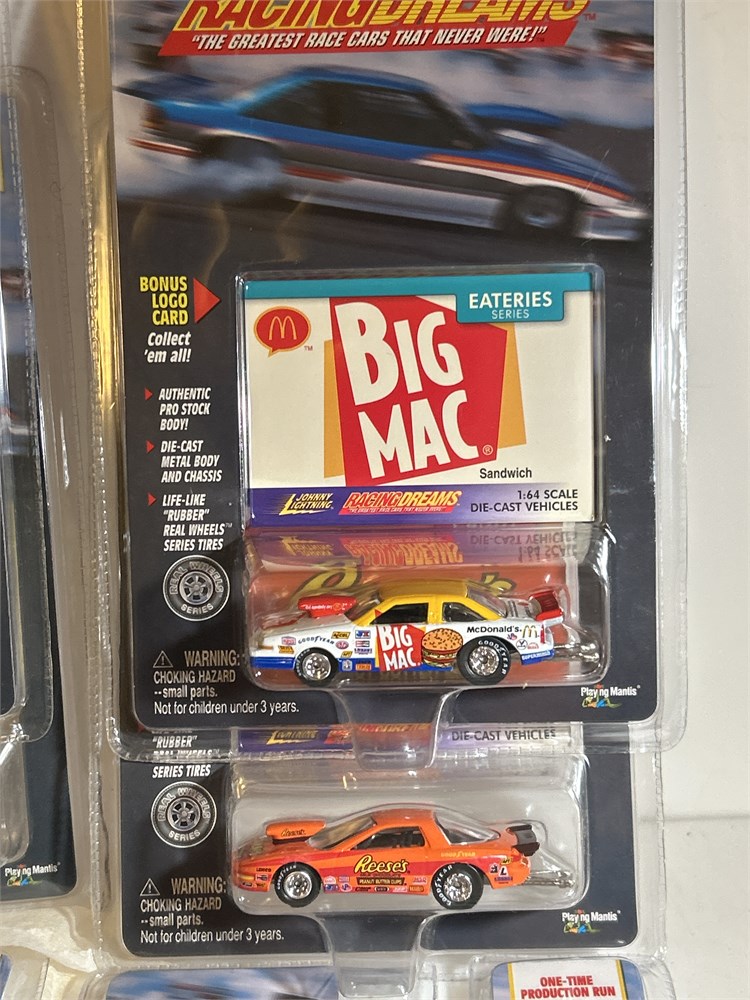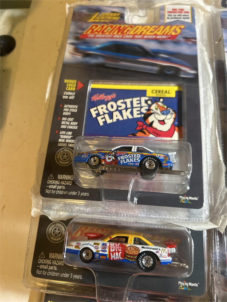 Racing dreams, the greatest race cars that ever were These are all pro stocks. We have two pens oil, three  frosted flakes two fudge three  Reesie‘s two big Mac. This is total of 12. They’re all brand new in the original package one full case.