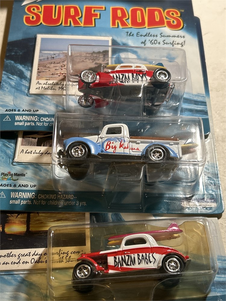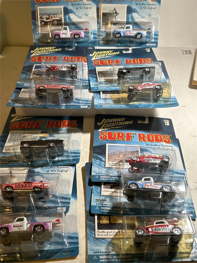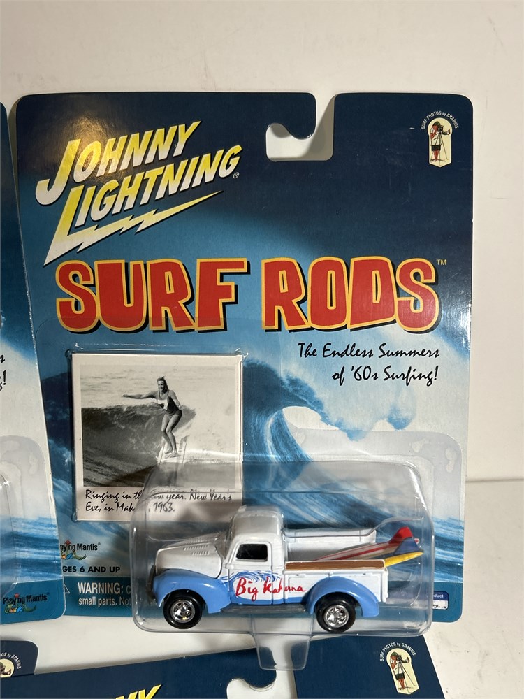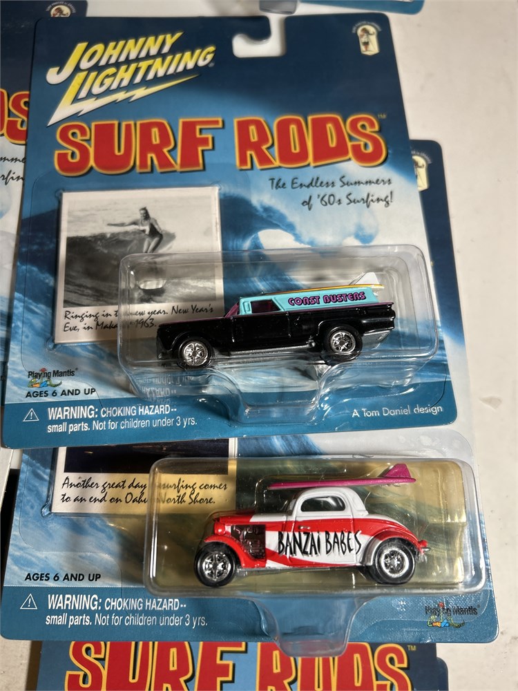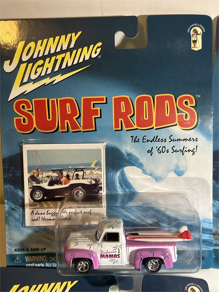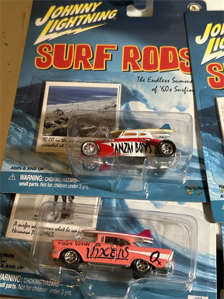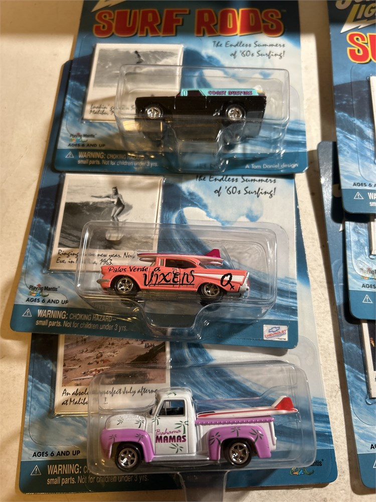 Johnny Lightning Surf Rods 2003 Coast Busters 1960 Chevy Panel  Delivery 1/64  Johnny Lightning Surf Rods '57 Chevy Bel Air Pink/White we have an assortment at 12 surf rods vintage looks to be two of each