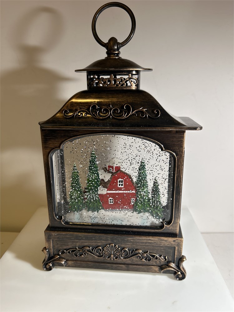 Valerie Holiday Illuminated Lantern Iridescent Water/Snow Globe Red Farmbarn (L)