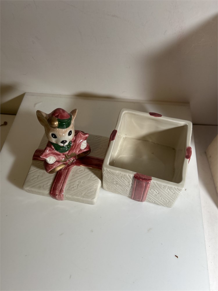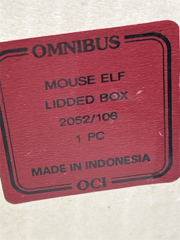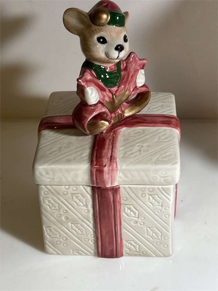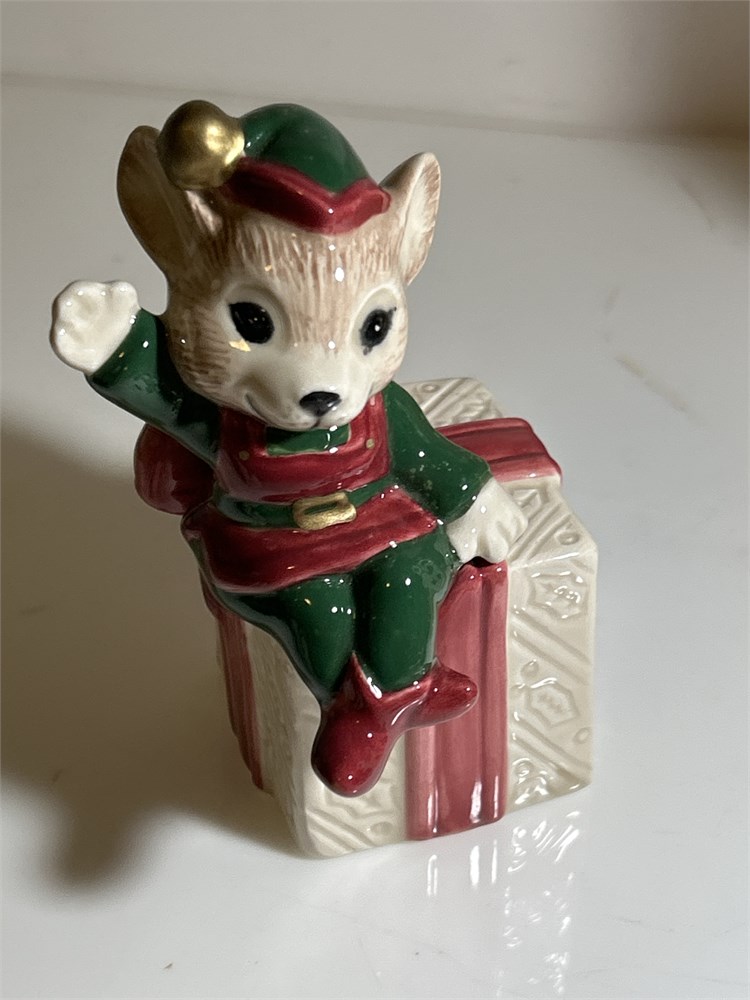 Omnibus by Fitz and Floyd Mouse Elf on Present Vintage Handpainted 6" Tall  Vtg Porcelain Dillards Mouse
