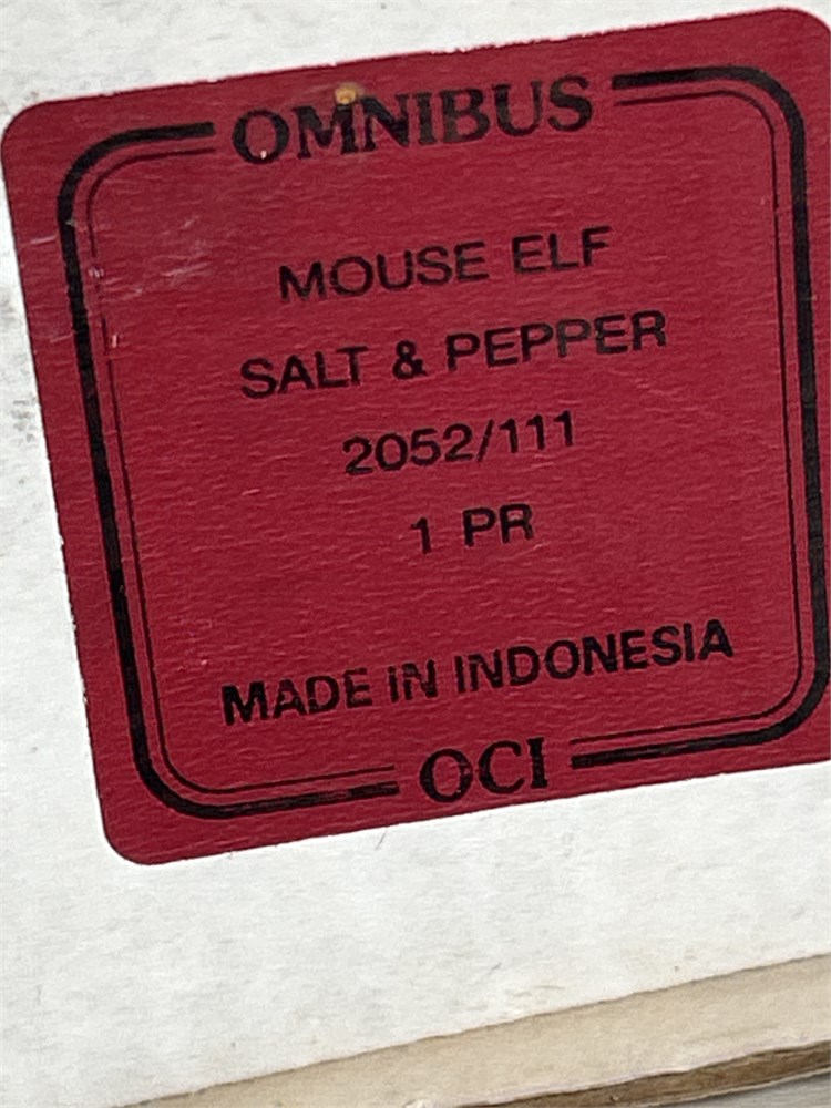 Vtg Porcelain Dillards Mouse Present Elf Salt Pepper Shakers in Box Box23(L)