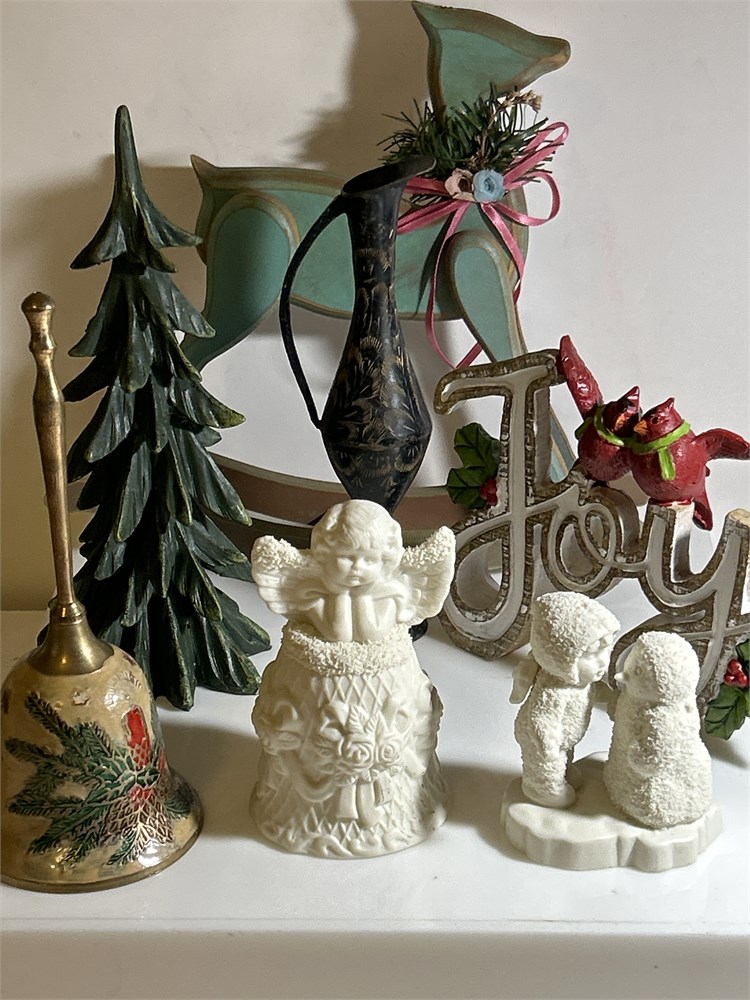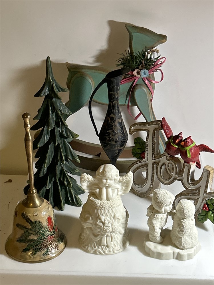 Finish Christmas line, bells, wood reindeer Christmas tree vase, Joey Penguin