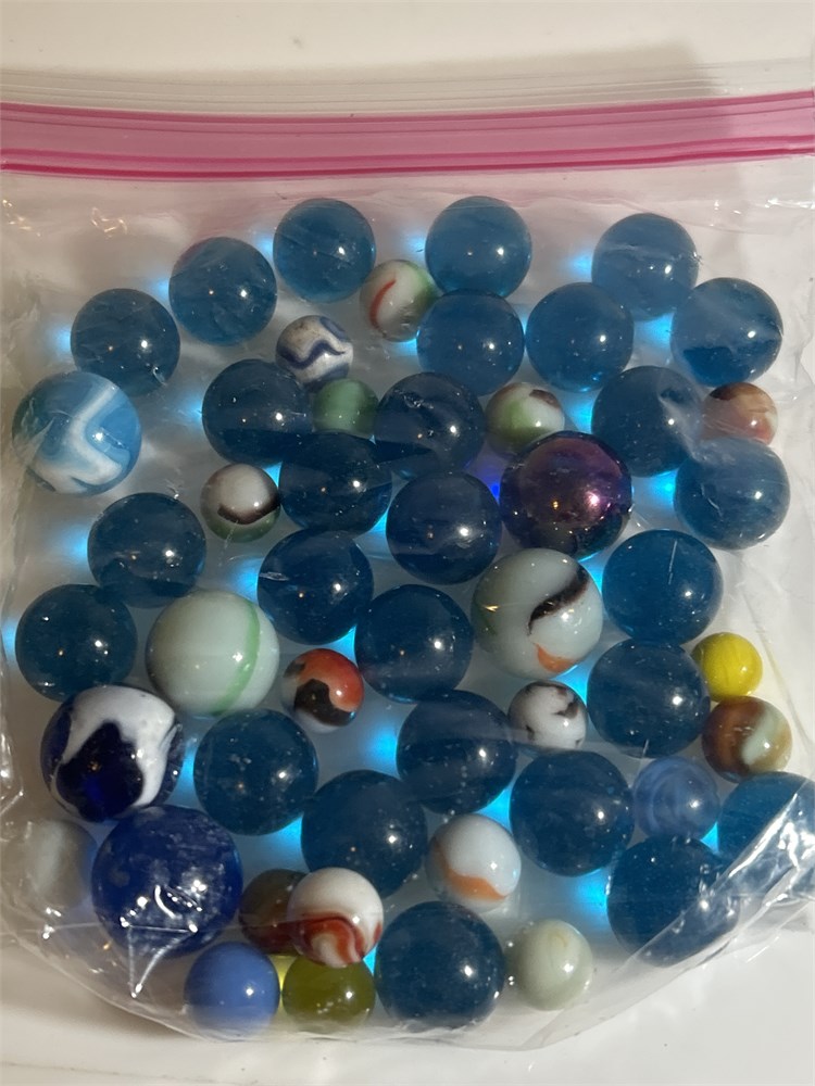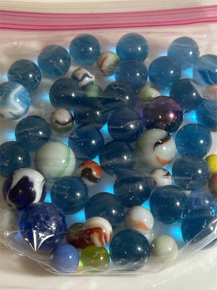 We have large marbles small marbles, different color marbles blue red orange green multiple colors