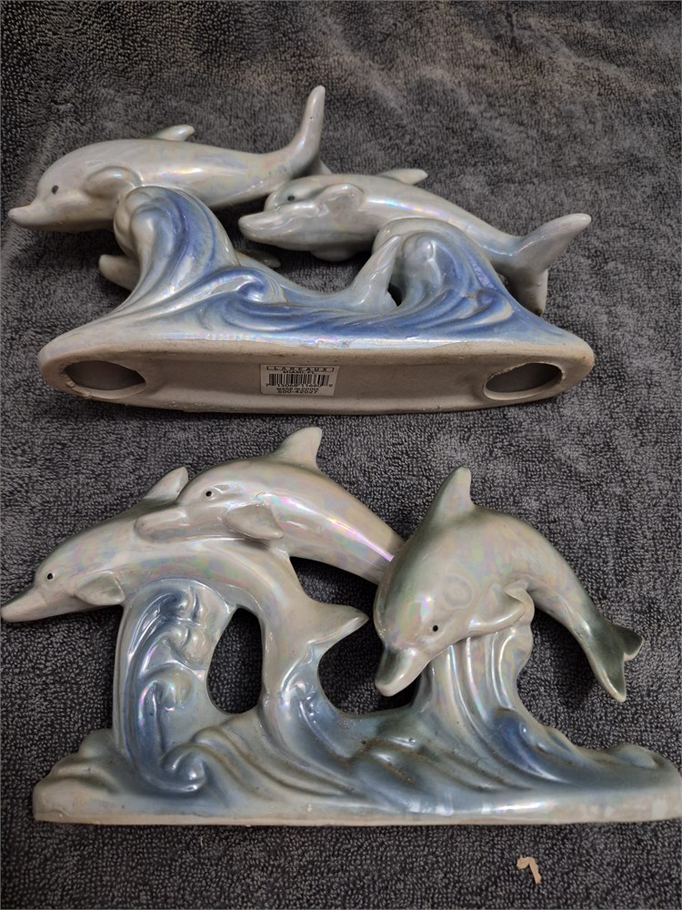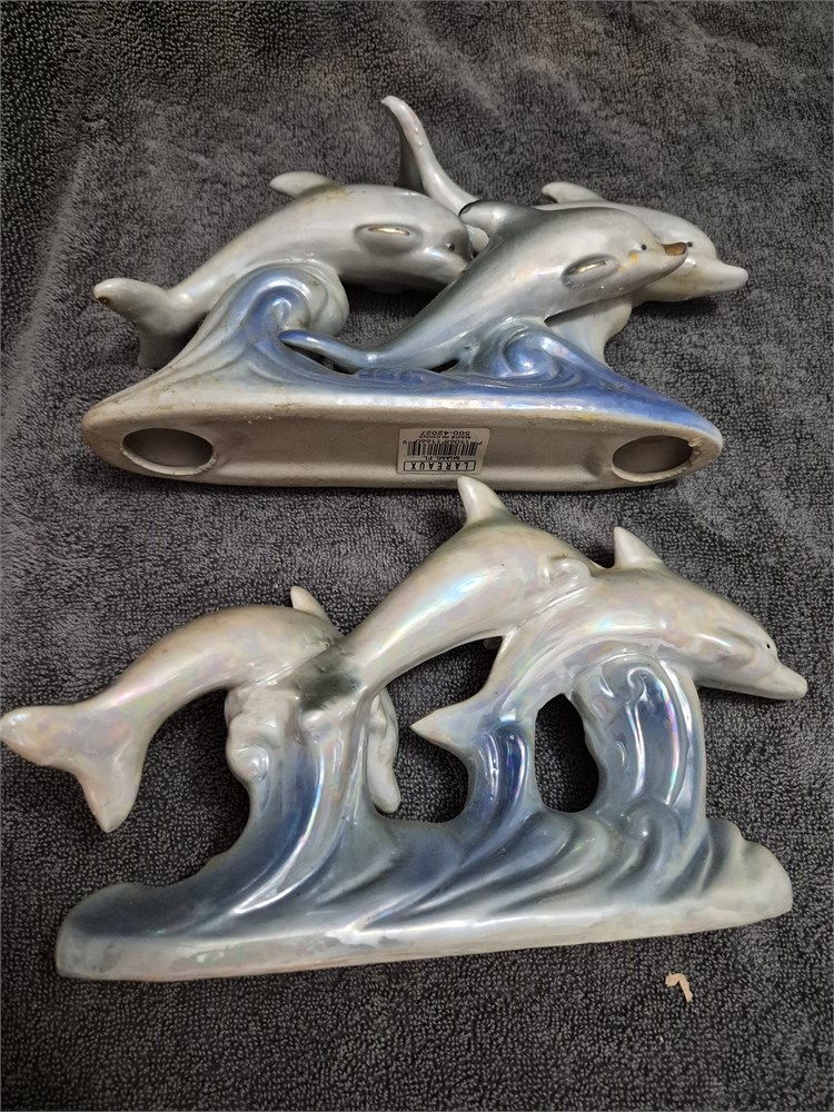 Dolphins On Waves Ocean Theme Details Porcelain/Ceramic/Iridescent Fig. Each measures 8" long and 6" tall.