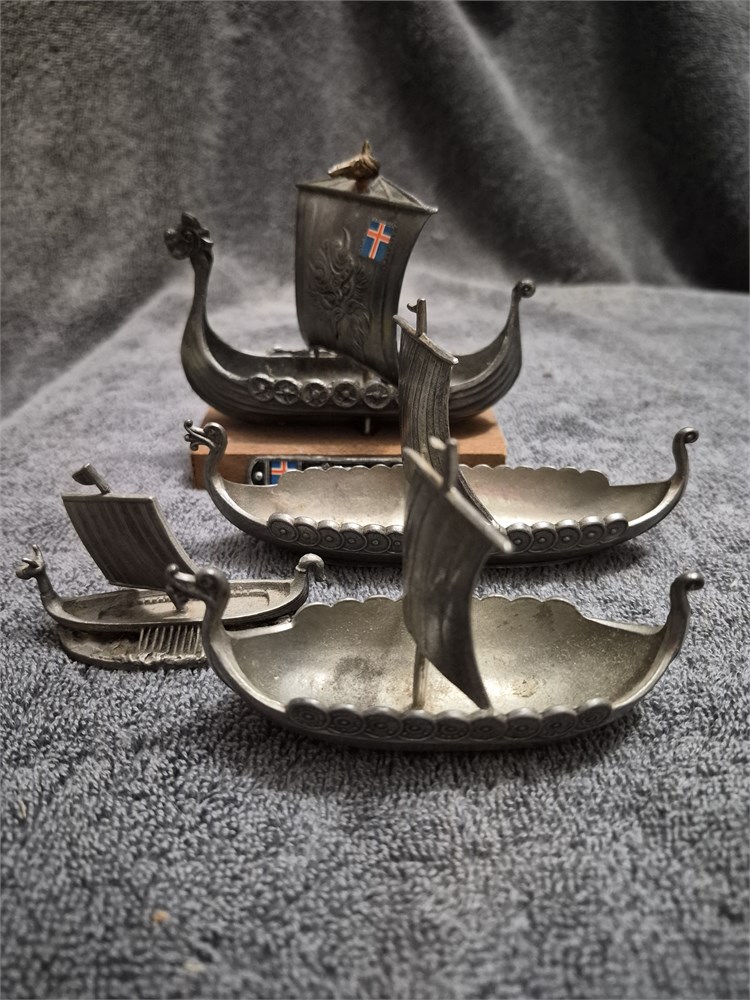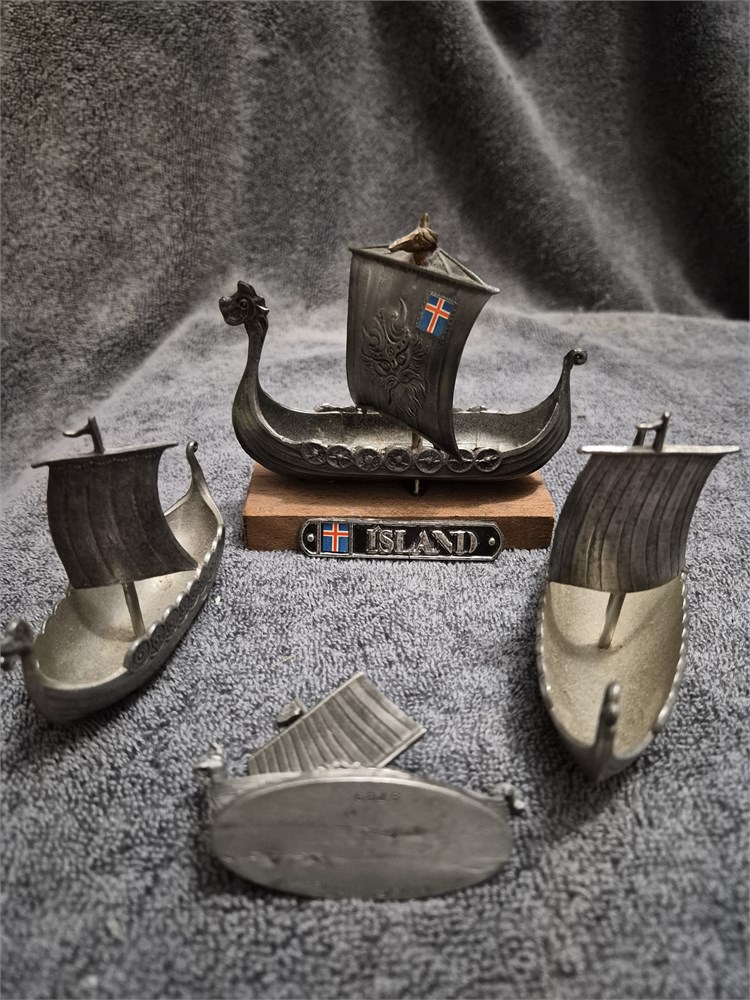 4 nice pewter sailing ships. Ships measure between 2" and 5".