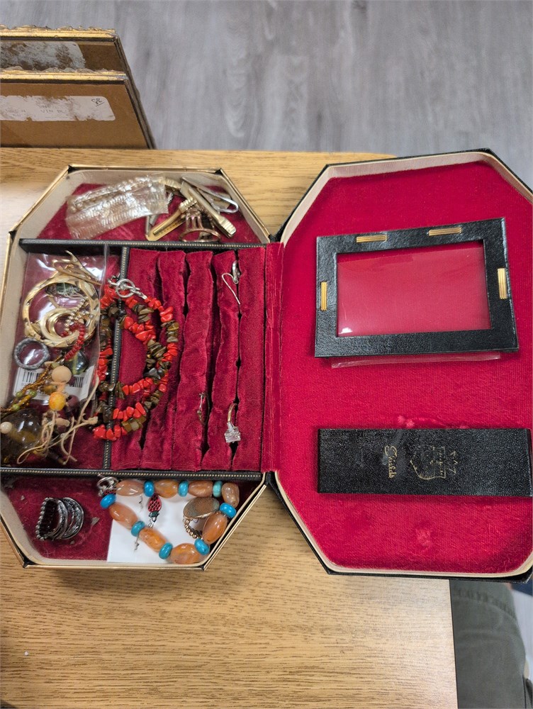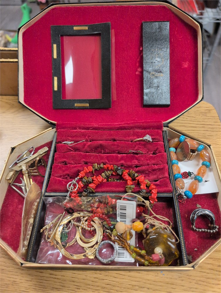 Vintage jewelry box filled with jewelry (d)
