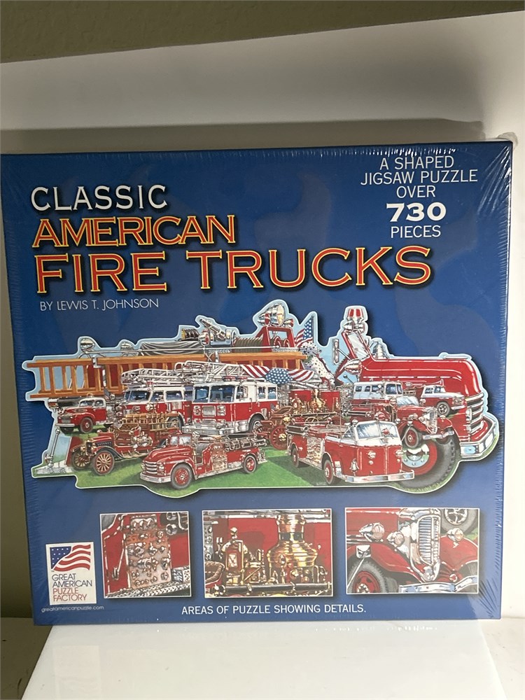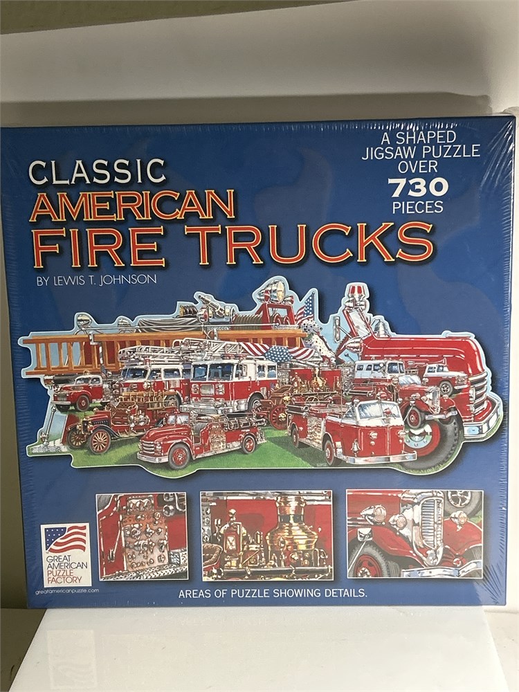 730 pc Classic American Fire Trucks Shaped Puzzle 36" x 15 1/2" (LS)