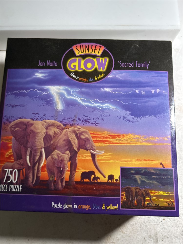 Sunset GLOW Elephant Jigsaw Puzzle •Sacred Family Jon Naito Artwork SEALED (LS)