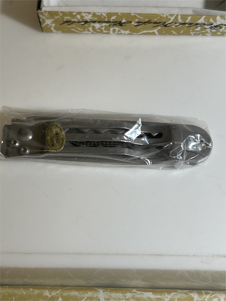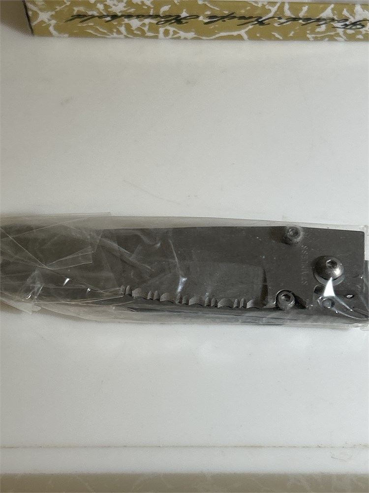 Six brand new folding knives, stainless steel blades in the original boxes  razor blades, sharp with belt holder