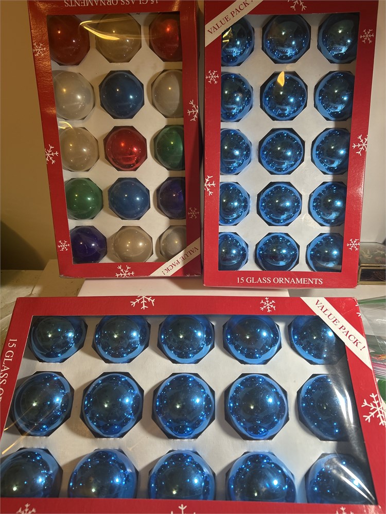 Set Ornaments Red Gold Blue Green 2 1/2"