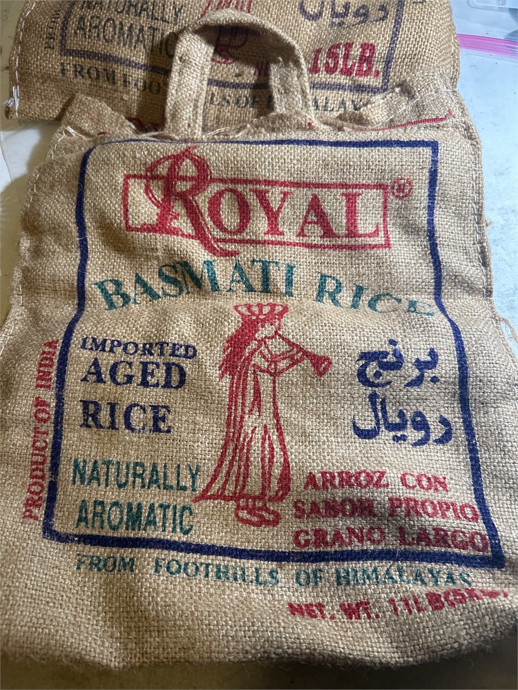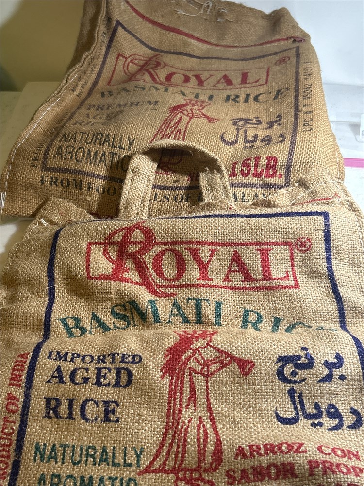2 Royal Basmati Rice Empty Bag Burlap Jute Zipper Bag w/ Handles India(CM)