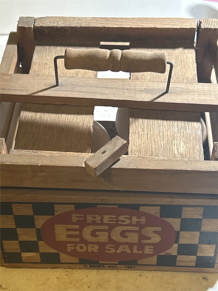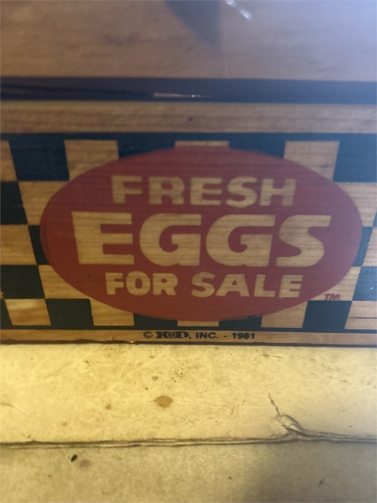 KOD INC. 1981 FRESH EGGS FOR SALE Wood Box/Egg Gathering