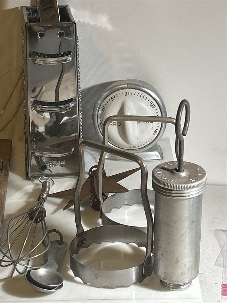 cookie cutters, cheese, shredders, vintage alarm, clock and more