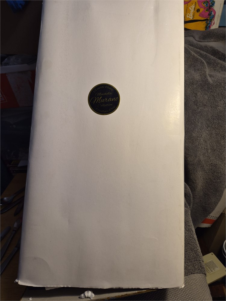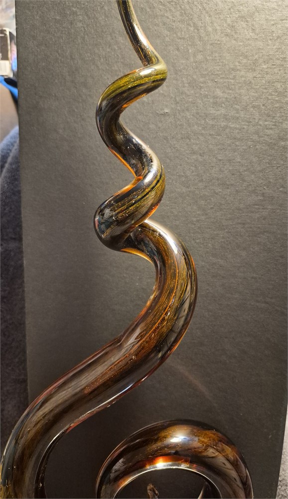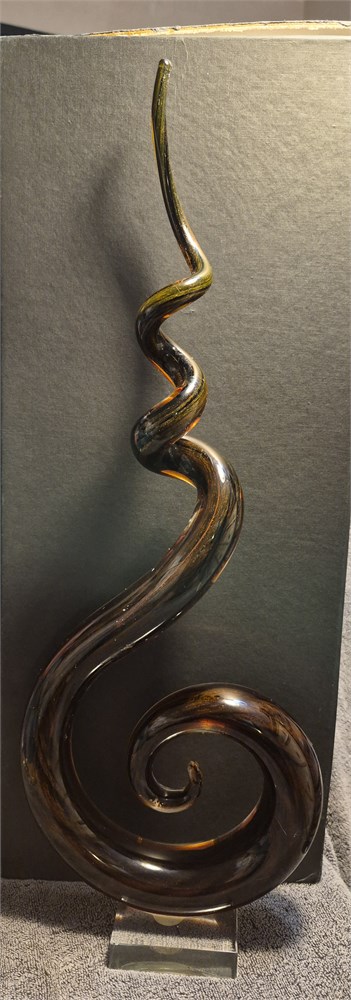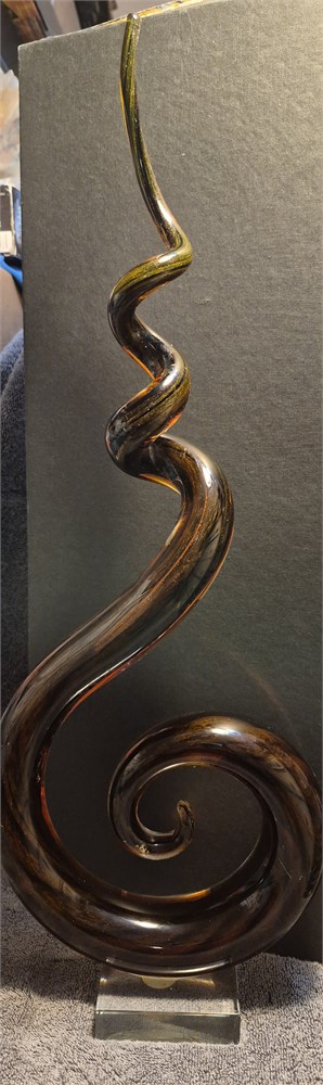 Vintage Murano Glassware Amber Swirl Sculpture With Clear Glass Base - 21". Comes with original box.