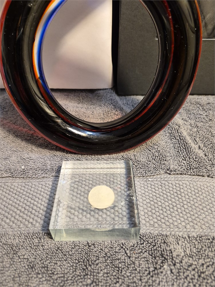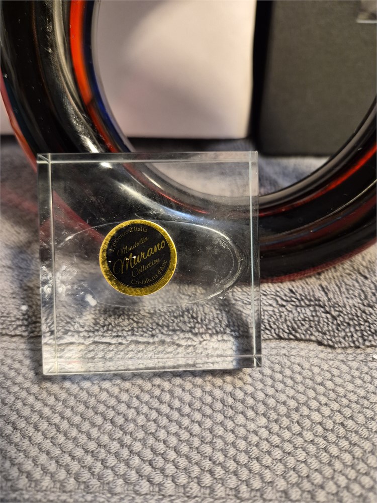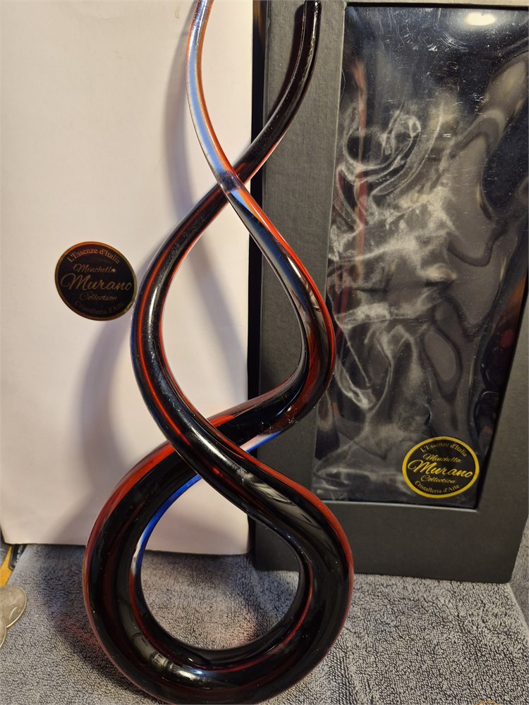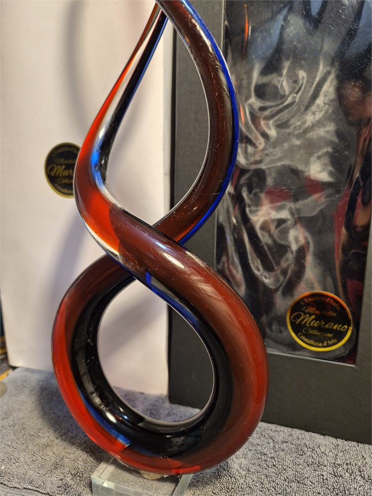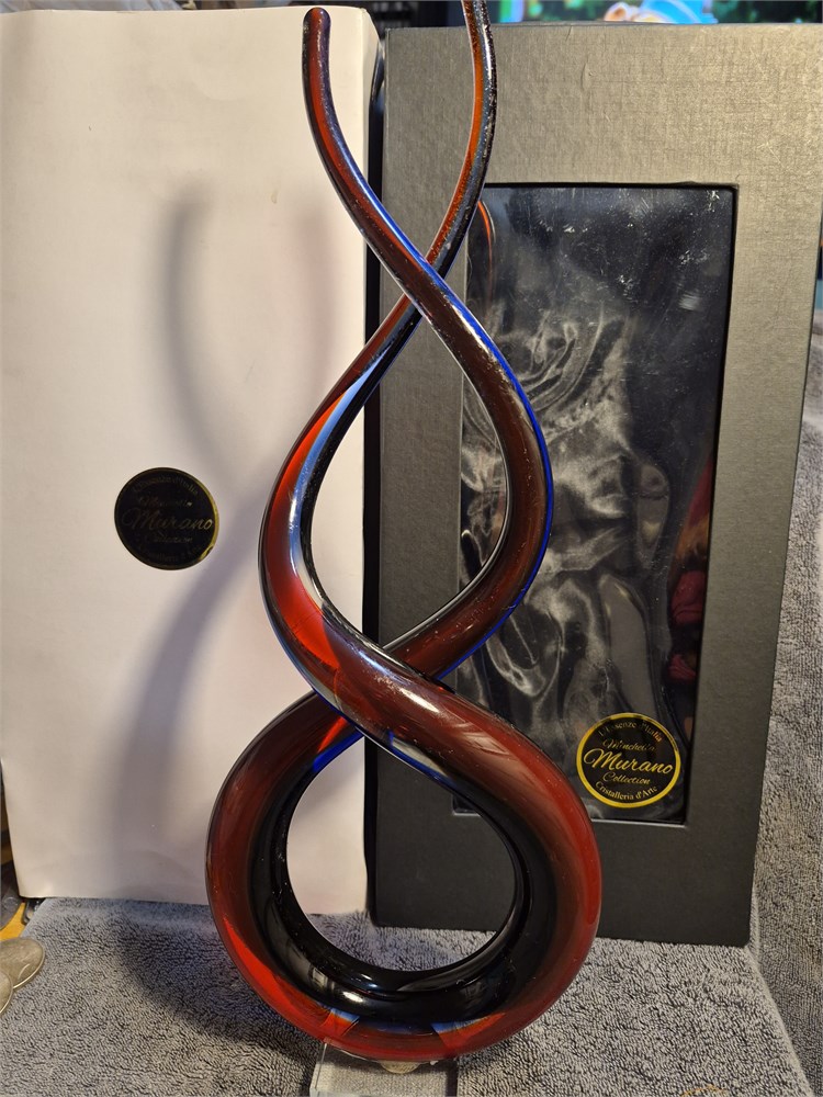 V81 Vintage Blue & Red Twisted Glass Art Trophies 14 3/4 inch Tall Glass Trophy. Comes in original box. Needs to be attached to base.