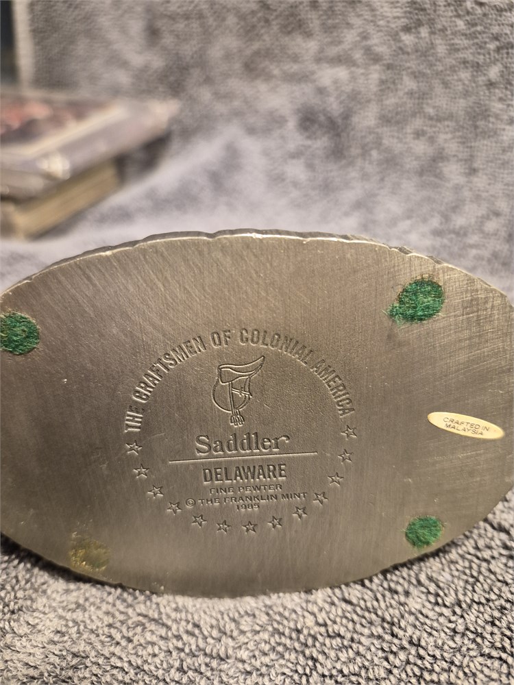 Vintage Franklin Mint Pewter Figurine 1985 “Saddler Delaware” Pre-Owned