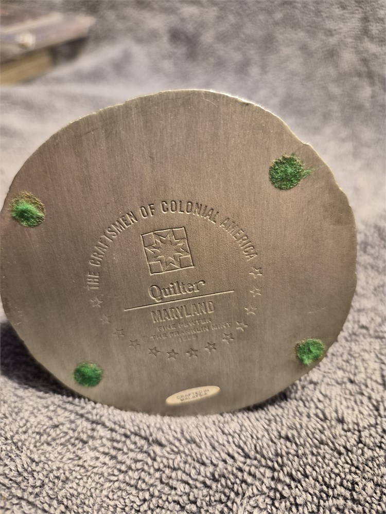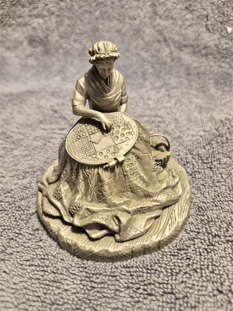 1985 The Franklin Mint Craftsmen of Colonial America Pewter Quilter Figurine.