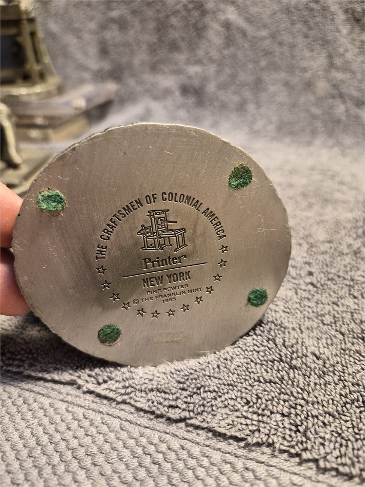 Vintage Franklin Mint Pewter Figurine 1985 “Silversmith Massachusetts” Pre-owned