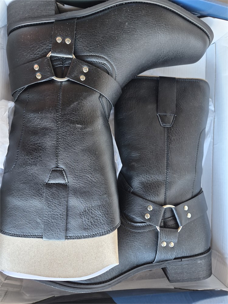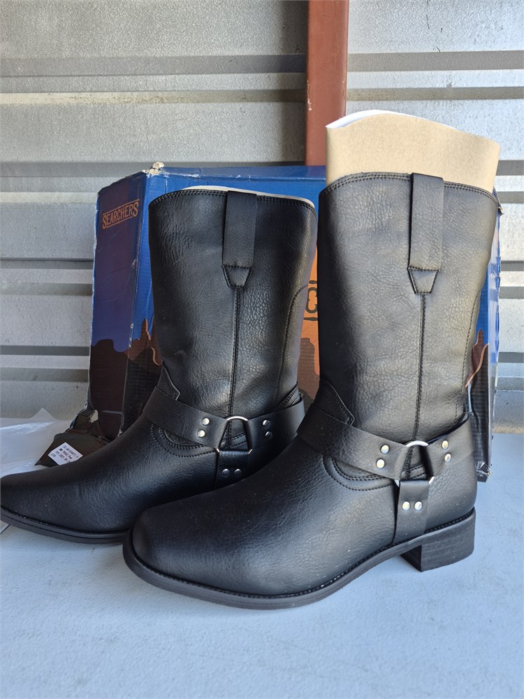 New inbox size large 10/11 black boots made by searchers. Boots are an excellent condition boxes a little rough.