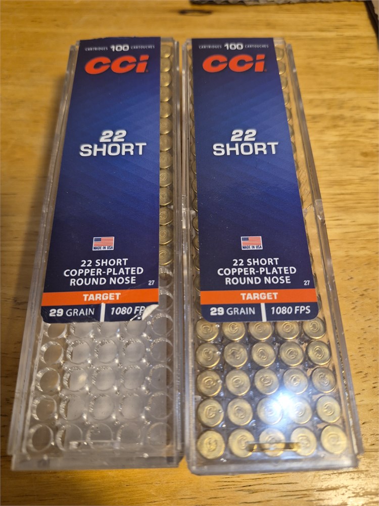 165 rounds of .22 Short Ammo. One box of 100 never opened and box with 65. CCI Brand.