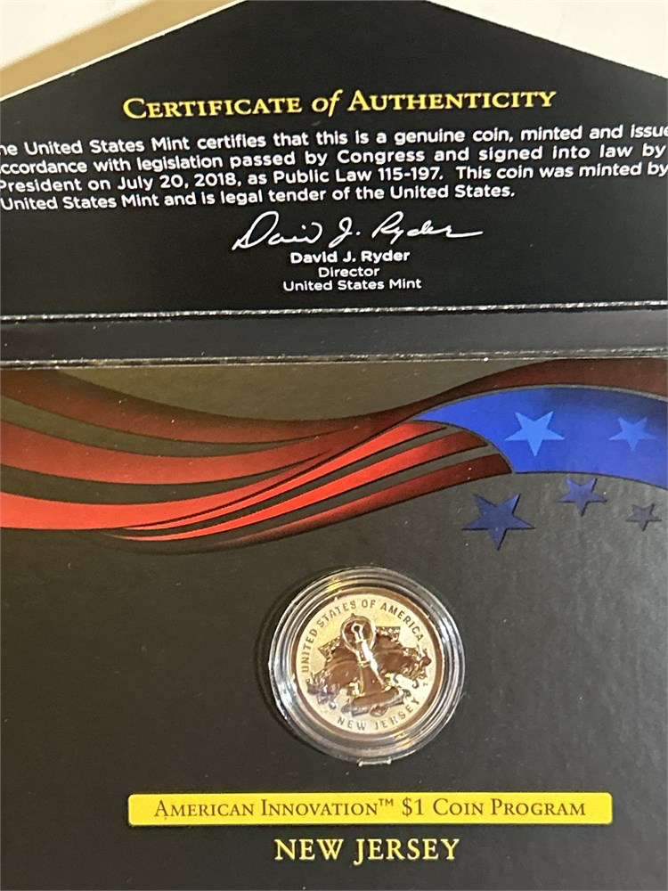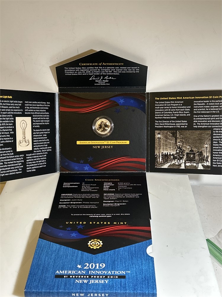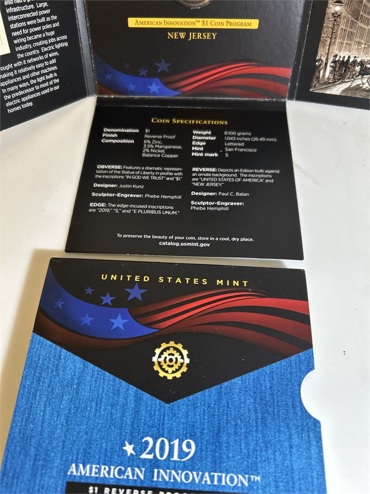 2019 S American Innovation New Jersey $1 Dollar Reverse Proof Coin W/ OGP (C5)