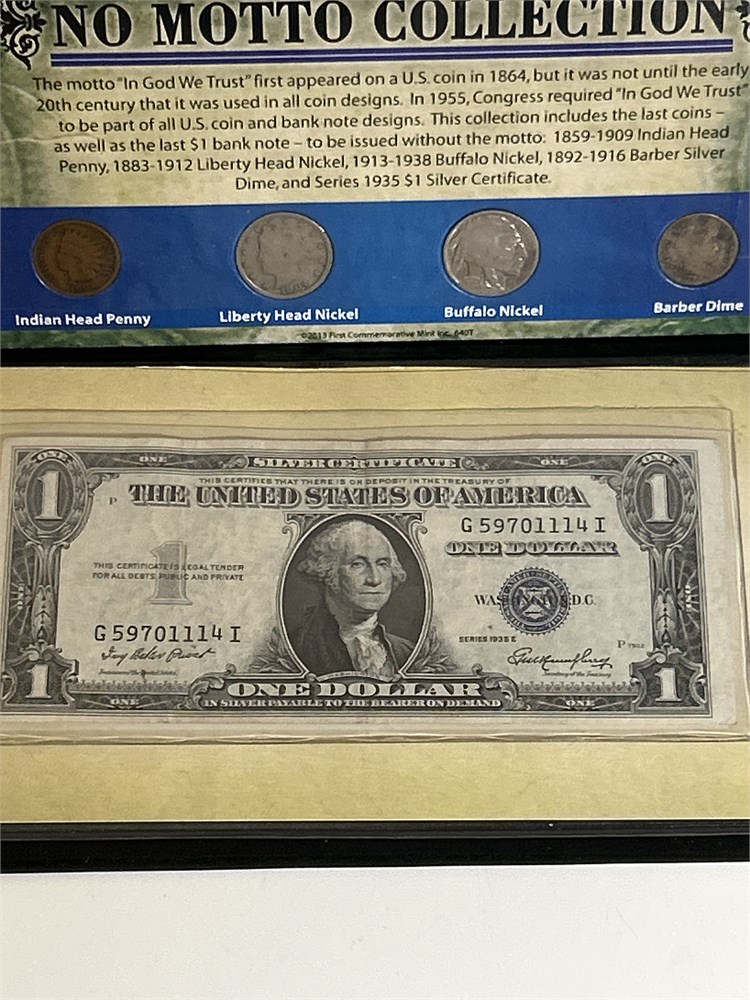 No Motto Collection Coin Mint Set & Silver Certificate First Commemorative (C5)