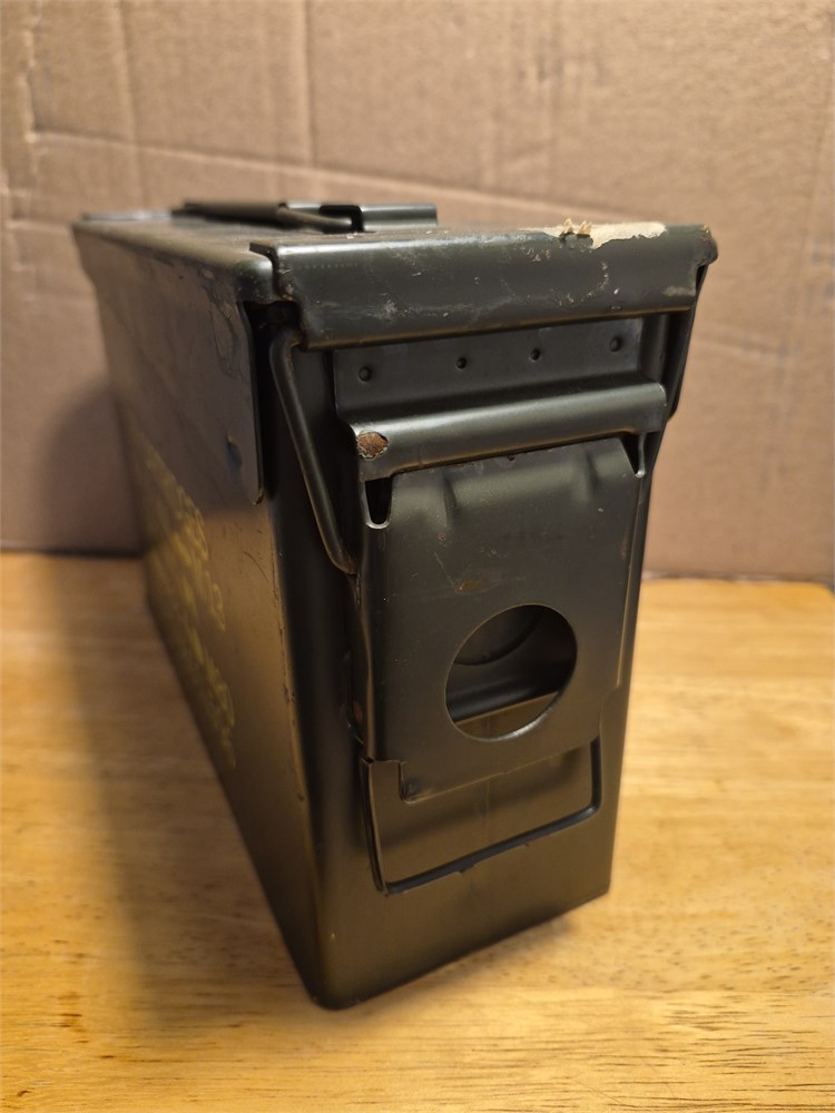 Nice smaller metal ammo case. Marked on side 200 cartridges for 7.2 mm. Case is in used but good condition. Measures 10 in Long 7 in tall 4 inches wide.