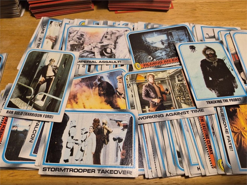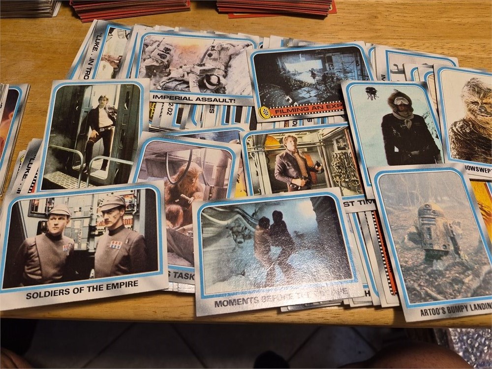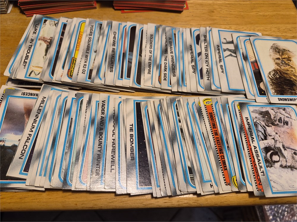 Nice lot of approximately 220 Star Wars The Empire Strikes Back cards from 1980. All cards look to be in pretty good condition.