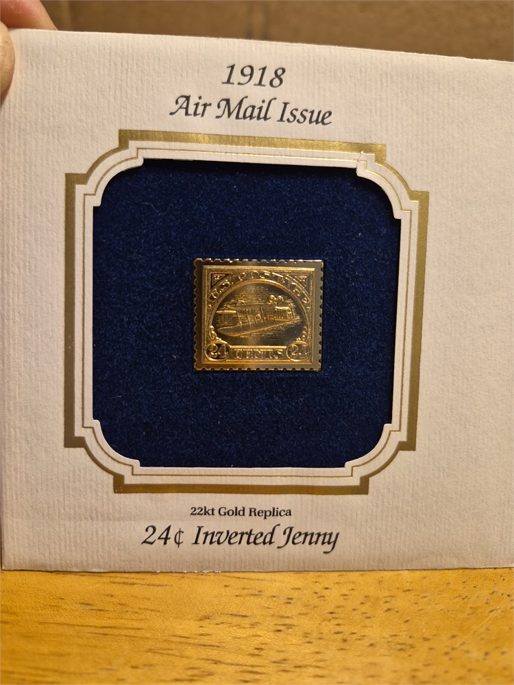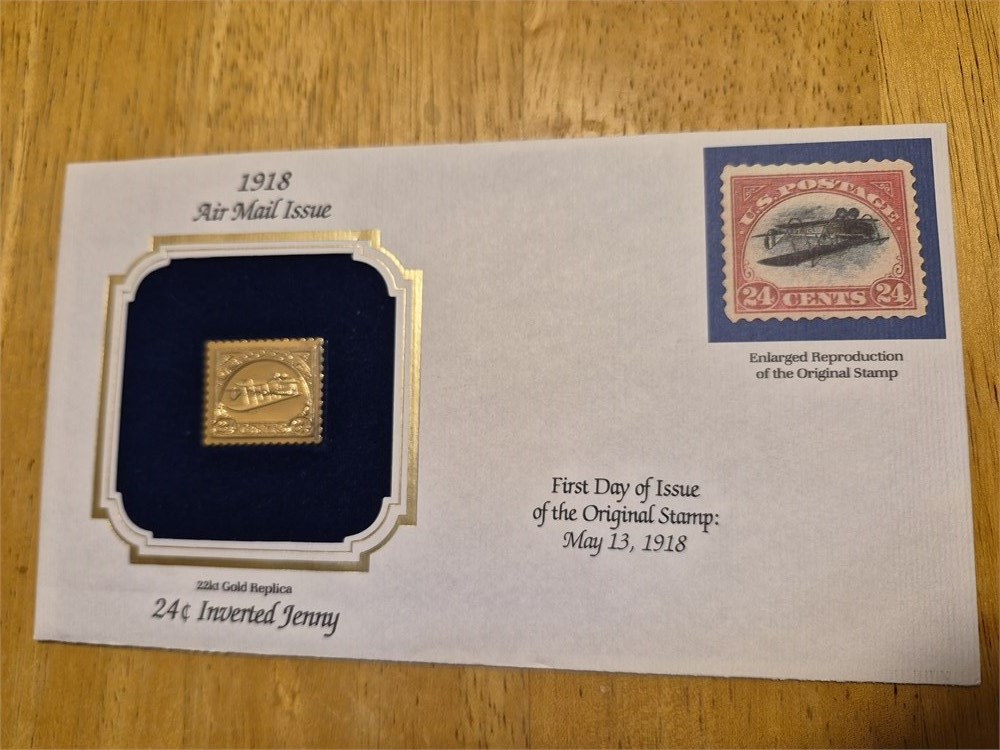 22K Gold Replica of 24 Cent U.S. Stamp Inverted Jenny First Day Issue