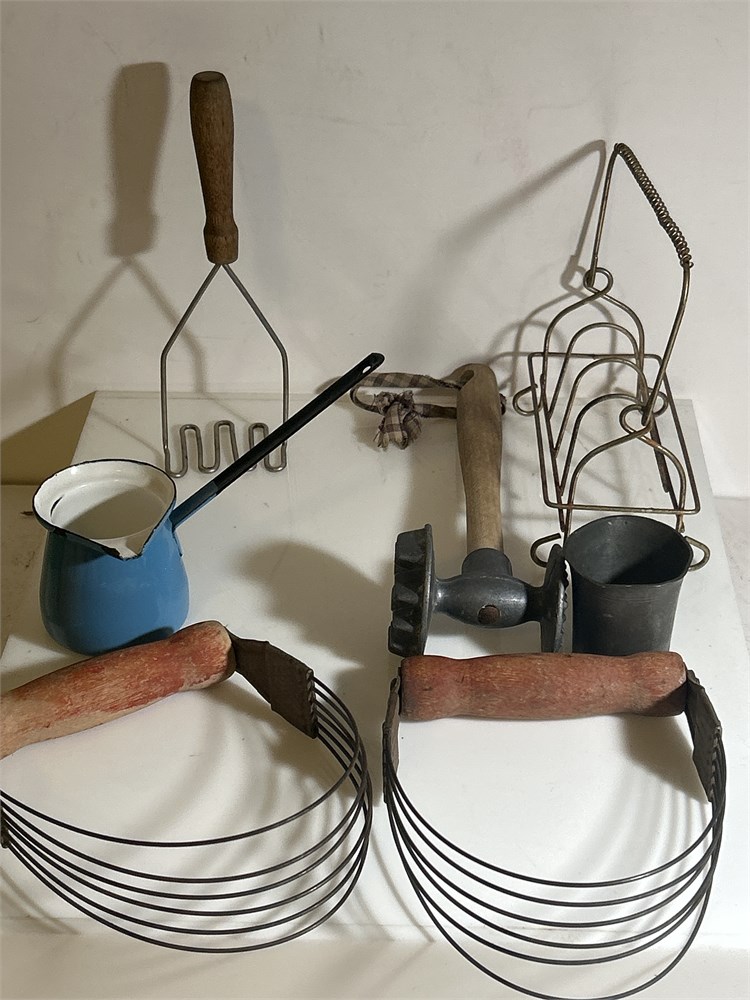 Vintage Androck Pastry Cutter Blender with Wooden Red Handle Vintage Modern Industries Meat Tenderizer Mallet With Wooden Handle  VTG Primitive Twisted Wire Potato Vegetable Masher Wooden Handle Kitchen