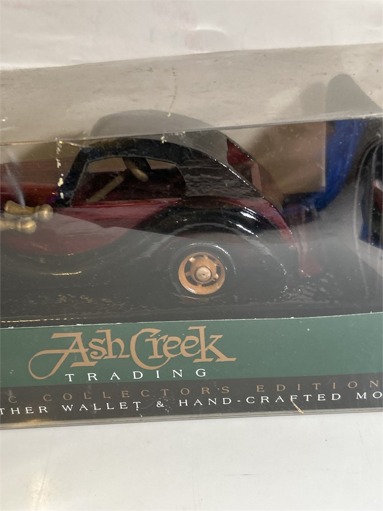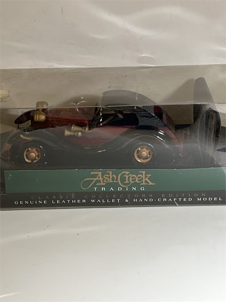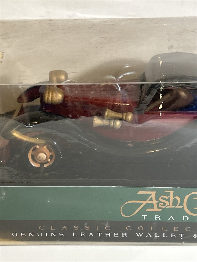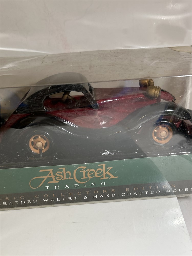 Ash Creek Trading Classic Hand Crafted Wooden Car & Leather Wallet NIB(LB)