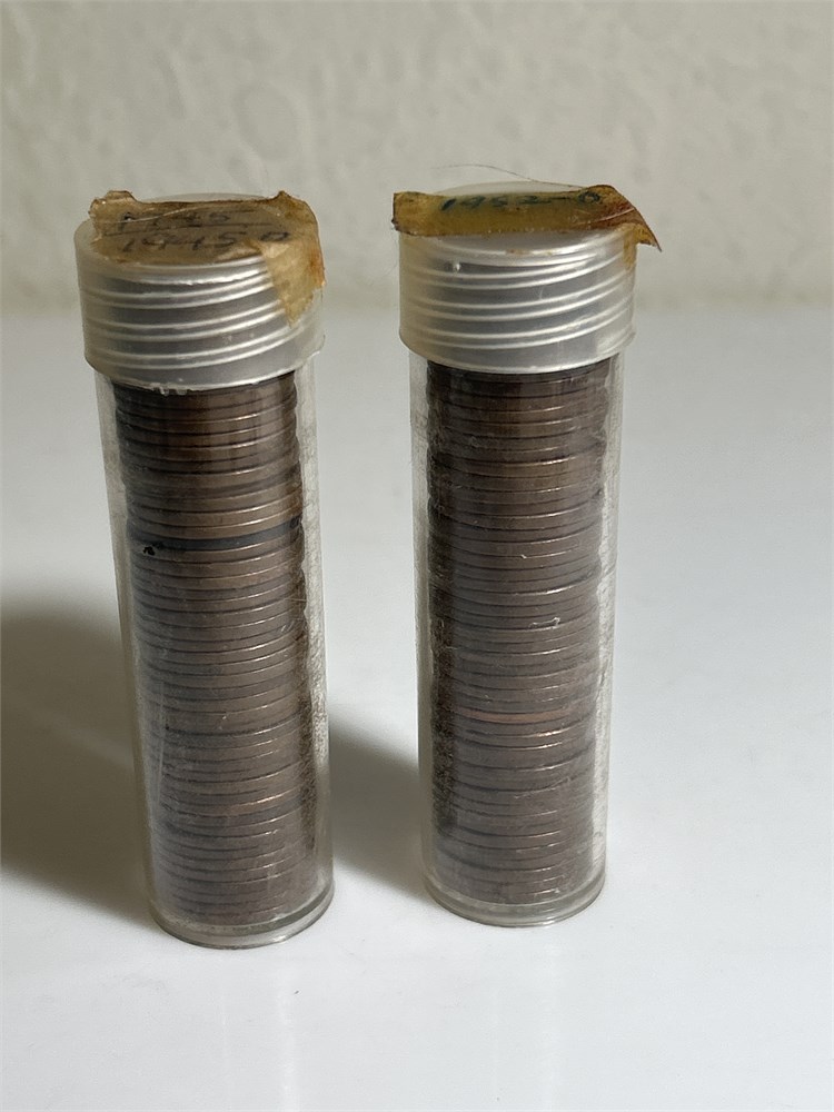 Vintage two rolls of wheat pennies 1945 and 1945 D mix roll and 1952 D whole roll