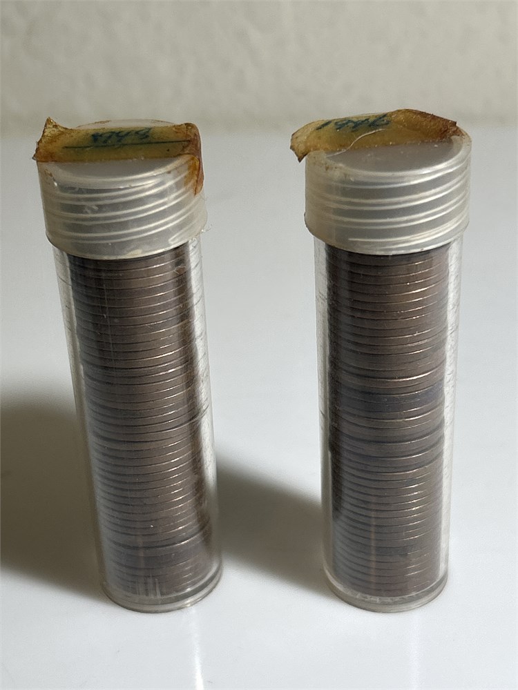 Vintage two rolls of wheat pennies 1948 Roll and 1946 roll