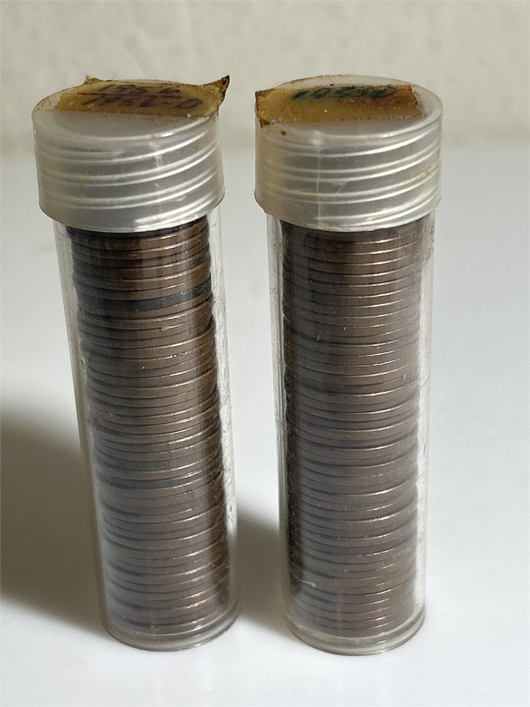 Vintage two rolls of wheat pennies 1956 and 1956D mix roll and 1955 D full roll