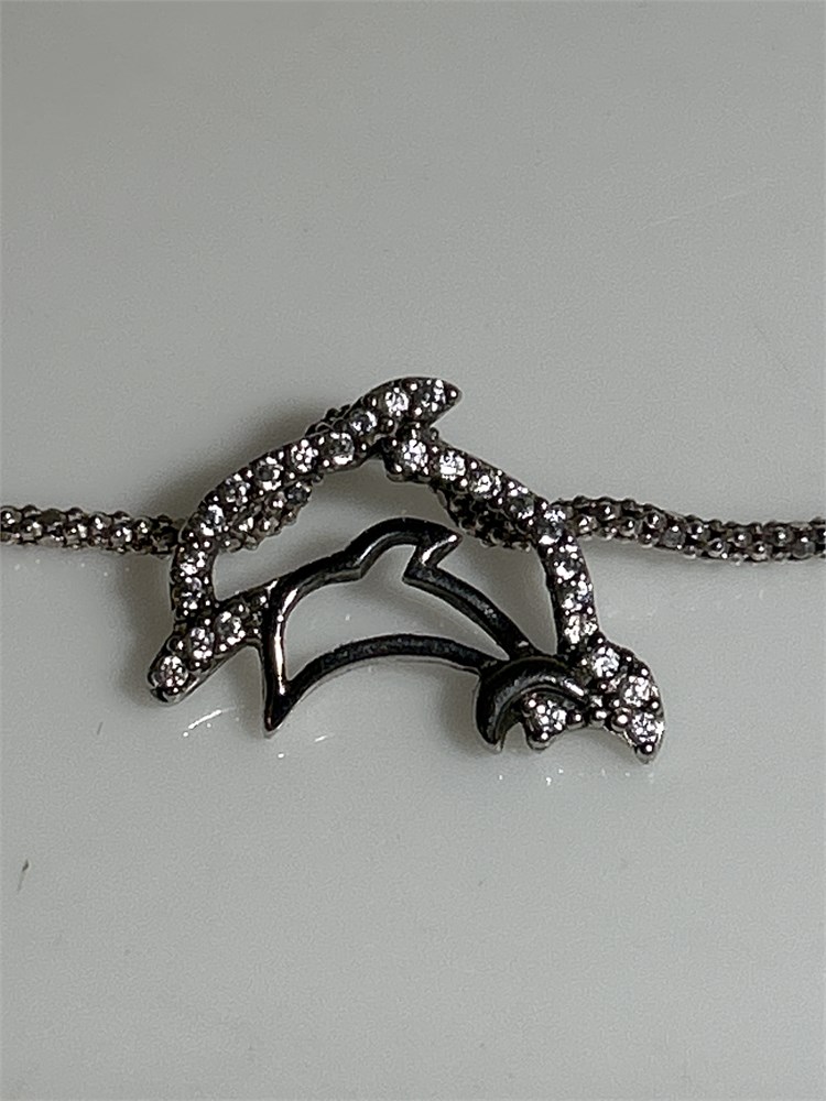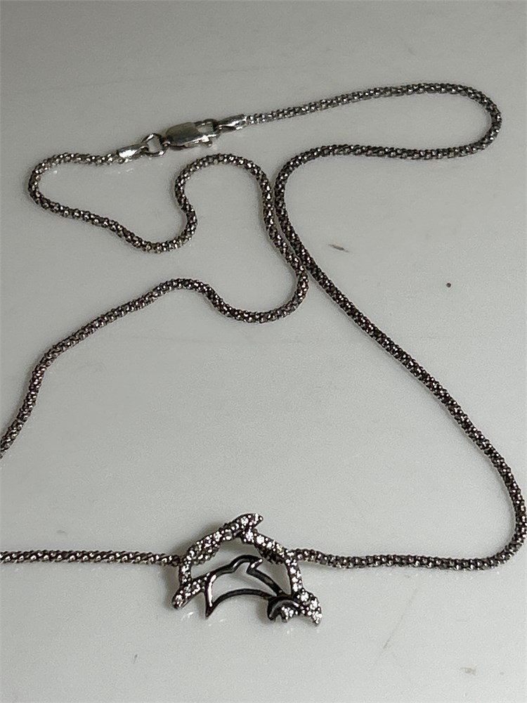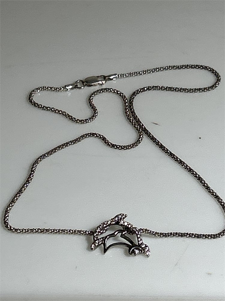 Dolphin sterling silver necklace, berry rare 4.73g The length 18 inches very unique piece