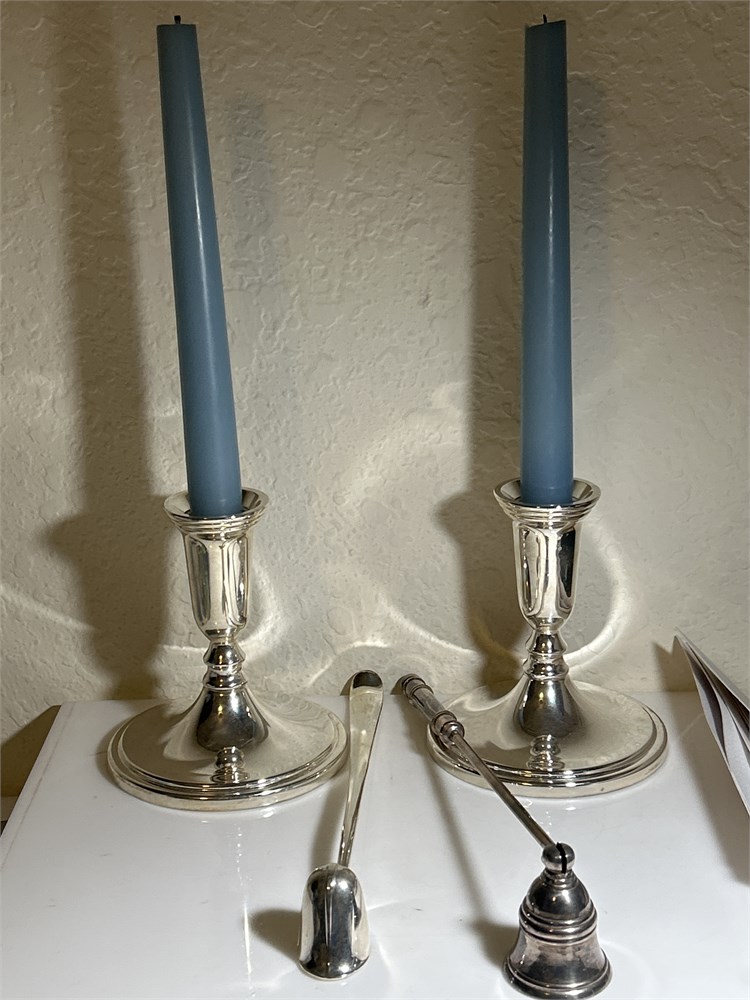 CANDLESTICKS Candle Holder2 Vintage 10" Plated SILVER CANDLE SNUFF