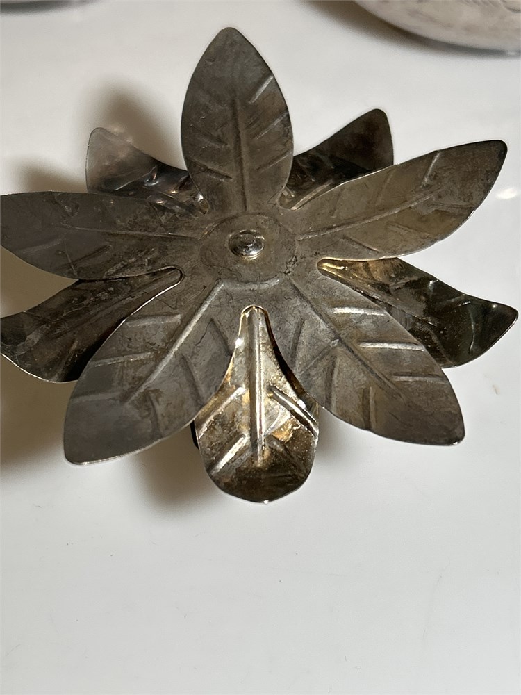 Silver plates, bones, forks, sugar, and cream pot candle holders, and decor